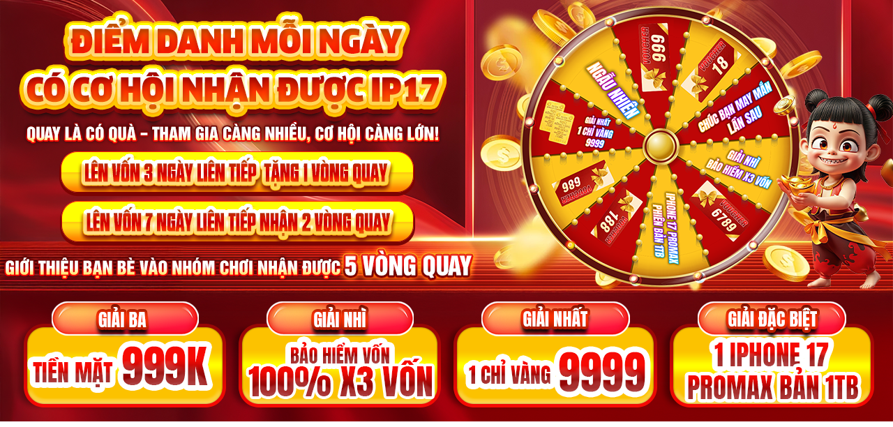 6789 Vòng Quay May Mắn là chương trình khuyến mãi nổi bật được 6789 Casino triển khai nhằm tri ân cộng đồng người chơi. Chỉ với một vòng quay, người tham gia có thể nhận ngay tiền mặt, vàng 9999 hoặc các phần thưởng giá trị cao.